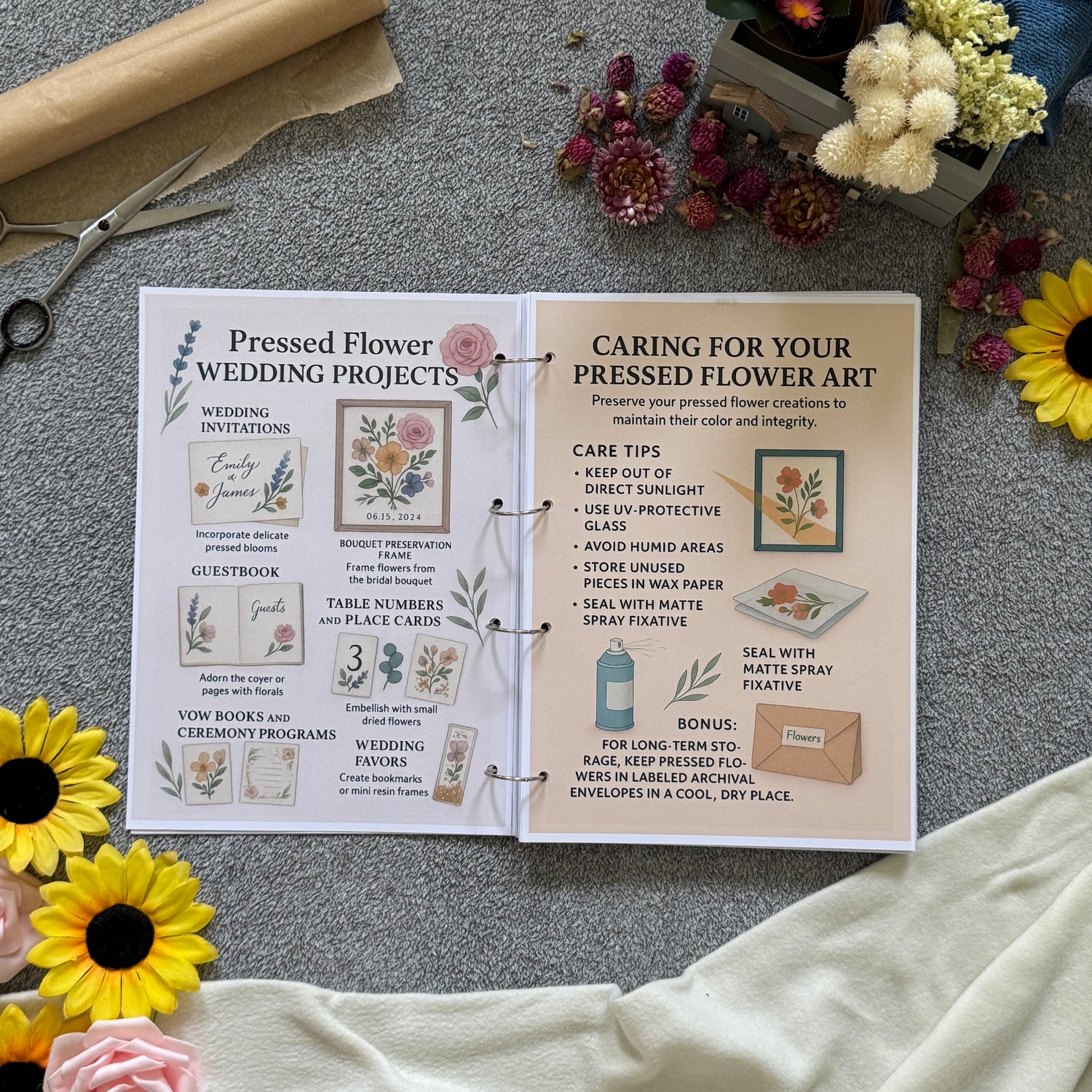 With guided layouts, drying techniques, and mindful project ideas, each page invites you to explore, create, and recharge. It's a space to build focus, patience, and artistic flow — one flower at a time.